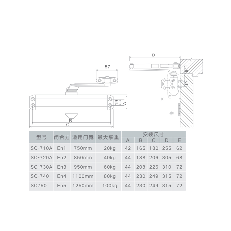 Name: Overhead Door Closer Agency Certification: In compliance with china XF93-2004 500,000 times test and 3c certification Mounting: For DIN left hand and DIN right hand use