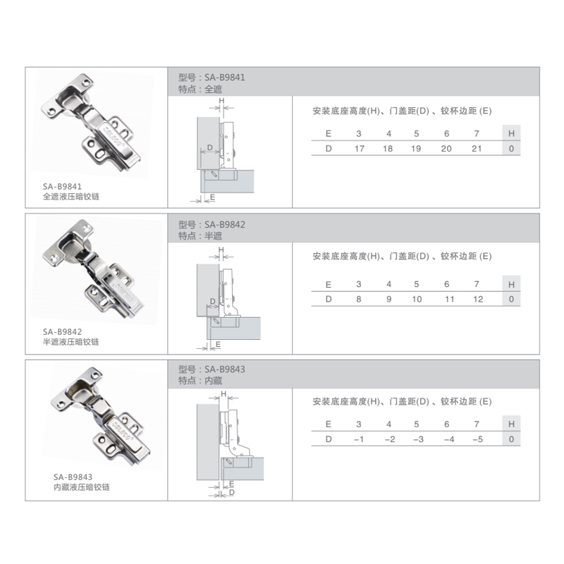 产品名称:液压暗铰链 适用范围:适用各类柜门 主要材质:不锈钢 铰杯深度:11 蘑菇影视在线观看. 5mm 铰杯直径:Φ35mm 面板(E)尺寸:3-7mm 门板厚度:14-21mm 最大承重:2只/8KG 主要功能:内置阻尼装置和自闭装置 主要特点:快拆装式 .