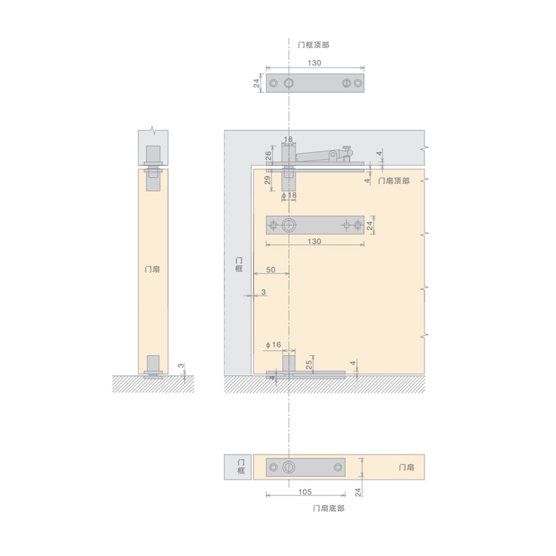 品 名:天地轴 应用范围:可应用于木门. 金属门 主要材质:不锈钢 最大承重:50kg 最大门宽:800mm 安装方式:不分左式和右式 蘑菇影视在线观看.