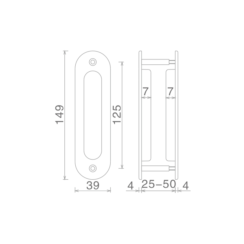 产品名称:暗拉手 适用范围:木质移动门扇 适用门厚:25mm-50mm 主要材质:锌合金