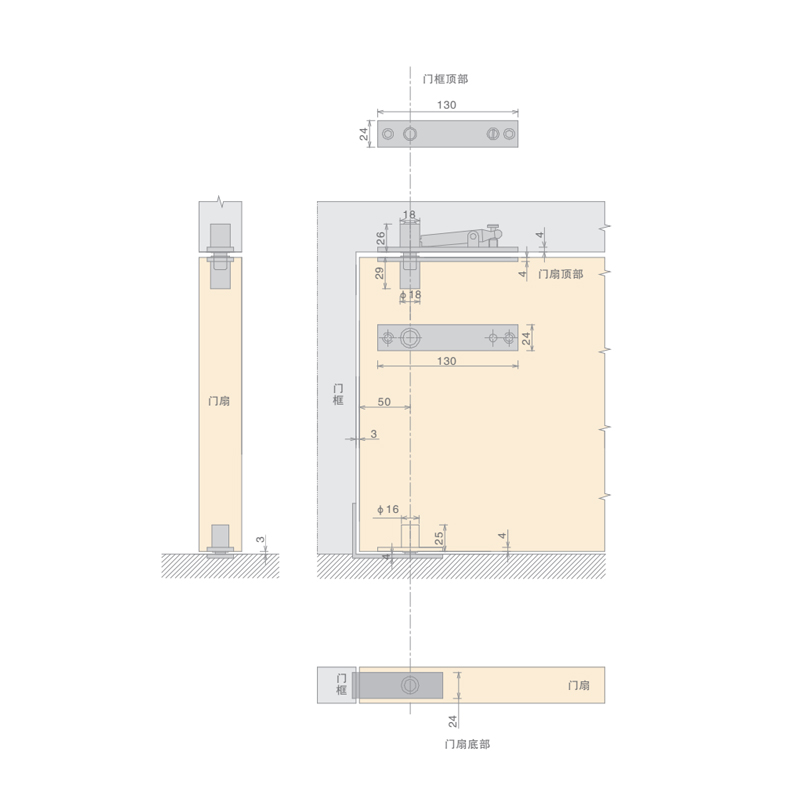 品 名:天地轴 应用范围:可应用于木门. 金属门 主要材质:不锈钢 最大承重:50kg 最大门宽:800mm 安装方式:不分左式和右式 蘑菇影视在线观看.